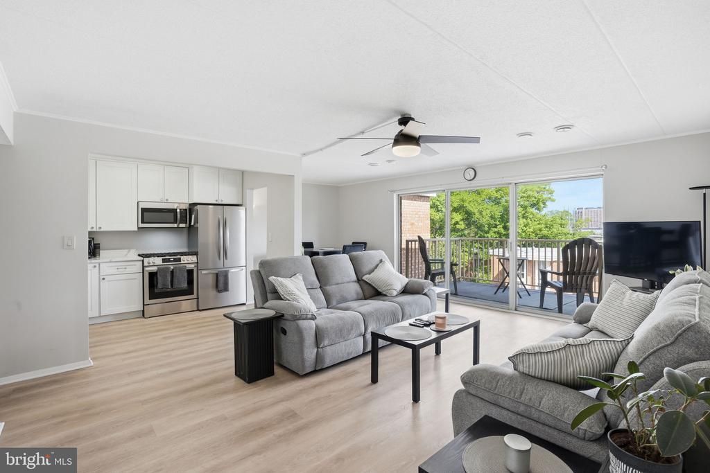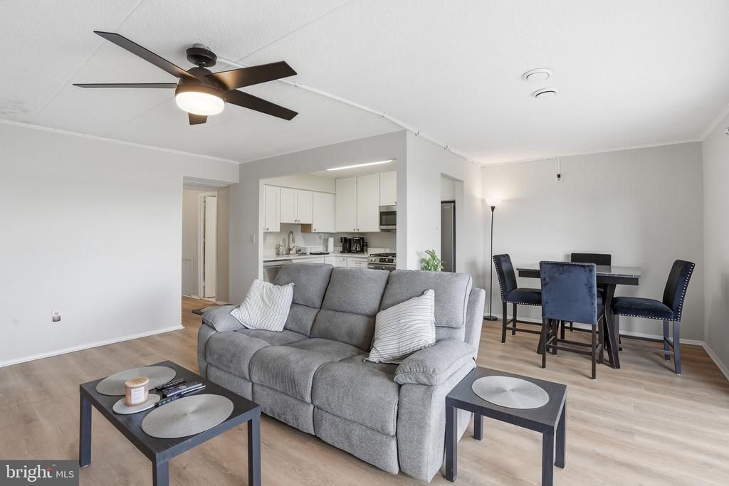 Welcome to 2622 Fort Farnsworth Rd #219, a bright and spacious top-floor 2-bedroom condo in the sought-after Huntington Club community. This move-in ready home offers a clean, modern feel with an open layout and great natural light throughout. The main living area features updated flooring and flows seamlessly into a dedicated dining space and a renovated kitchen with white cabinetry, stainless steel appliances, and ample counter space. The living room opens to a large private balcony with elevated views, perfect for relaxing or entertaining. Both bedrooms are generously sized, including an oversized primary with a walk-in closet. The bathroom has been updated with a double vanity and modern finishes, offering both style and functionality. Ceiling fans in multiple rooms and large windows throughout enhance comfort and airflow. The condo has an assigned parking space and storage unit. The rent includes all utilities: electricity, water, gas, and air conditioning. Huntington Club is a commuter-friendly community just minutes from the Huntington Metro, I-495, and Route 1, with easy access to Amazon HQ2, Old Town Alexandria, National Harbor, and DC. Residents enjoy a range of amenities including a pool, fitness center, tennis courts, and landscaped grounds.