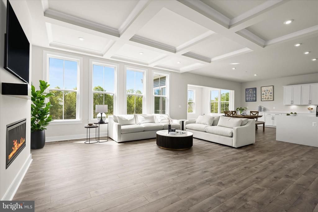 Exceptional Stanley Martin Custom Homes Taylor model featuring a desirable first-floor bedroom addition, ideally positioned on a premium .58-acre homesite backing to a tranquil nature preserve in the sought-after Woodborne Preserve community. Built in 2022, this east-facing, nearly new residence offers more than 6,000 square feet of beautifully finished living space, highlighted by a light-filled open floor plan, refined finishes, and outstanding versatility across three completed levels. A covered front porch welcomes you into a bright, airy foyer, gracefully flanked by a formal dining room and private study. The expansive living area is bathed in natural light and highlighted by a modern wall-mounted gas fireplace and striking coffered ceiling. The upgraded gourmet kitchen is a true centerpiece, featuring a waterfall island, sweeping quartz countertops, and high-end GE stainless steel appliances, seamlessly flowing into a window-wrapped morning room addition with picturesque backyard views. The main level also offers a desirable bedroom suite with a private en suite bath, along with a stylish powder room for guests. Recessed lighting has been thoughtfully upgraded throughout all three levels, enhancing every bedroom and living space. The spacious primary suite impresses with a large walk-in closet and a luxurious upgraded en suite bath showcasing dual quartz vanities and an oversized glass-enclosed shower. Three additional generously sized bedrooms, a well-appointed hall bath, and a convenient laundry room complete this level. The finished walkout lower level offers exceptional versatility, featuring wide stairs to the backyard, a spacious recreation room, a sixth bedroom, a full bath, and abundant storage with ample room to create a future media room. Outdoor living is equally inviting on the beautifully landscaped lot, offering space, privacy, and serene surroundings. This home also features a three-car garage and rare-to-the-community extended driveway, offering exceptional parking and convenience. Ideally located with easy access to major commuter routes to Washington, DC, and close to the natural beauty of Shenandoah National Park, as well as nearby shopping, dining, and entertainment.